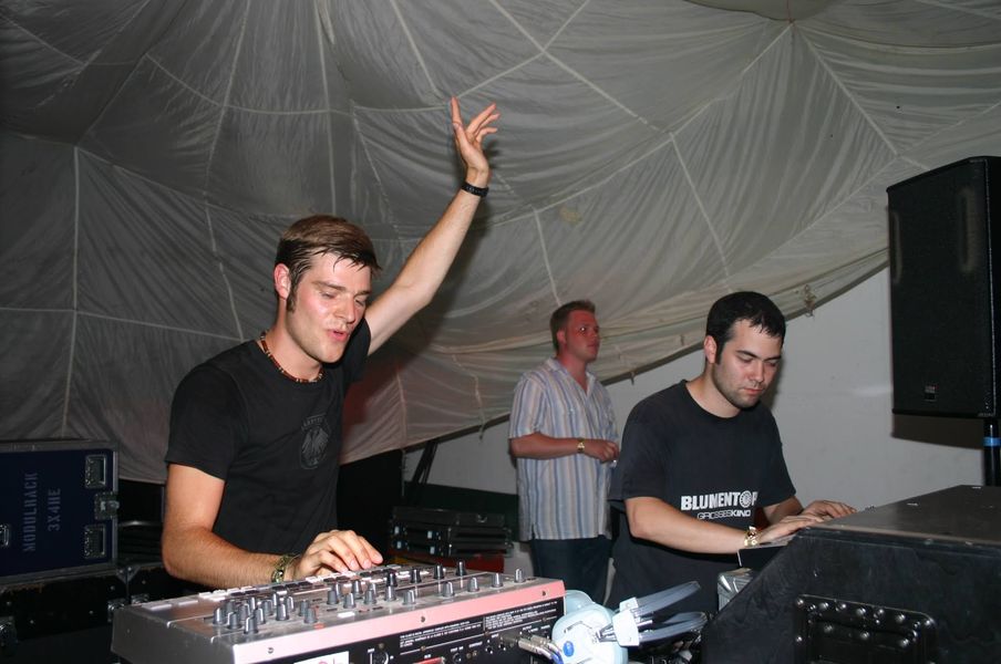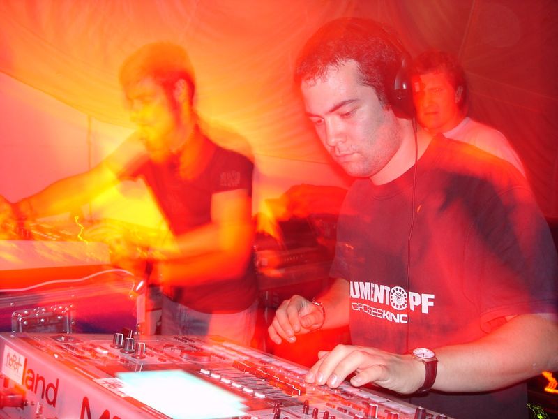 Es war also der erste auftritt seit 5 monaten, dementsprechend die vorfreude. diesmal gönnten wir uns auch, beide n-o-nächte dabeizusein. nach einem sehr genialen auftakt am freitag, waren wir also am samstag um 1 dran. wesentlich besser, als 22uhr letztes jahr. nexone übergab uns einen relativ vollen tanzboden, den wir, meisterlich wie wir nunmal sind, innerhalb von ca. 5 minunten fast leergespielt hatten. und dies, obwohl wir mir 152bpm einstiegen... das liveakt-leben ist hart. so suchten wir gemeinsam nach den spuren in unseren grooveboxen, die die rockenden beatz und die pumpenden bässe hervorbringen. aber wir würden nicht mopot heissen wenn wir nicht letztendlich doch noch die crowd auf unserer seite gehabt hätten. 152 war euch wohl zu langsam. bei 160bpm platzte der knoten, a-man und filterbasslines waren das, was ihr wolltet. zum glück gab uns anon noch ein paar minuten von seiner spielzeit ab... so war es ein guter
